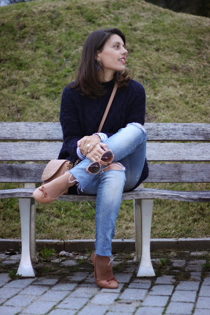 No look de hoje partilho uma das minhas prendas de Natal, esta linda mala da Parfois. Desde que a moda das riscas surgiu que queria uma assim, mas só agora encontrei a tal.